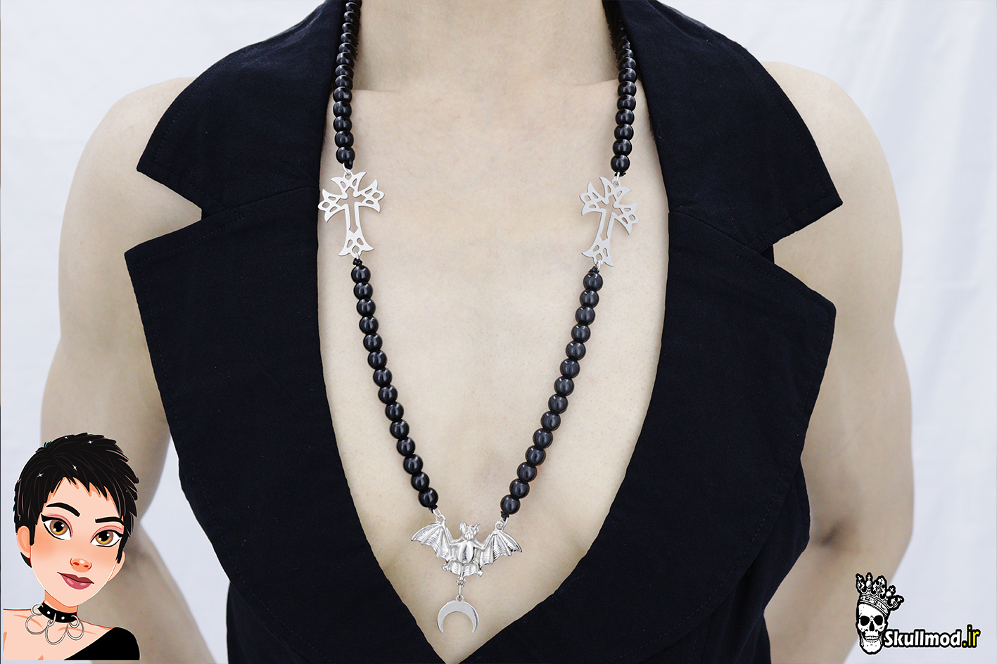 با گردنبند روزاری صلیب گاتیک و خفاش، استایل منحصربهفرد خود را به نمایش بگذارید! این اکسسوری جذاب با آویز ماه کوچک طراحی اختصاصی اسکالمد، ترکیبی عالی از ظرافت و رمزآلودی استایل گاتیک است که به هر لباسی جلوهای خاص میبخشد. این گردنبند متمایز را به کلکسیون خود اضافه کنید و دیگران را با سلیقه بینظیرتان شگفتزده کنید!